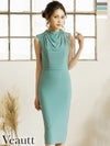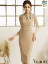 ドレープネックがエレガント☆ [Veautt/ヴュート] 高級ドレープネックビジュータイト膝丈ドレス