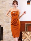 落ち着いた色味で魅了する☆ [Veautt/ヴュート] 高級 バストカット ビジュー ワンショルダー 谷間魅せ ファスナースリット タイト 膝丈ドレス