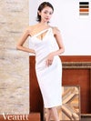 キャバドレス  膝丈ドレス Veautt/ヴュート 高級 バストカット ビジュー ワンショルダー 谷間魅せ ファスナースリット タイト 膝丈ドレス