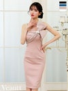 フェミニンな色気を醸し出す♡ [Veautt/ヴュート] 高級 ビッグリボン ワンショルダー パールストラップ付き バックスリット タイト 膝丈ドレス