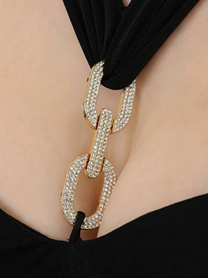5. [Veautt/ヴュート] 高級 バストチャーム ホルターネック ウエストギャザー ファスナースリット タイト 膝丈ドレス