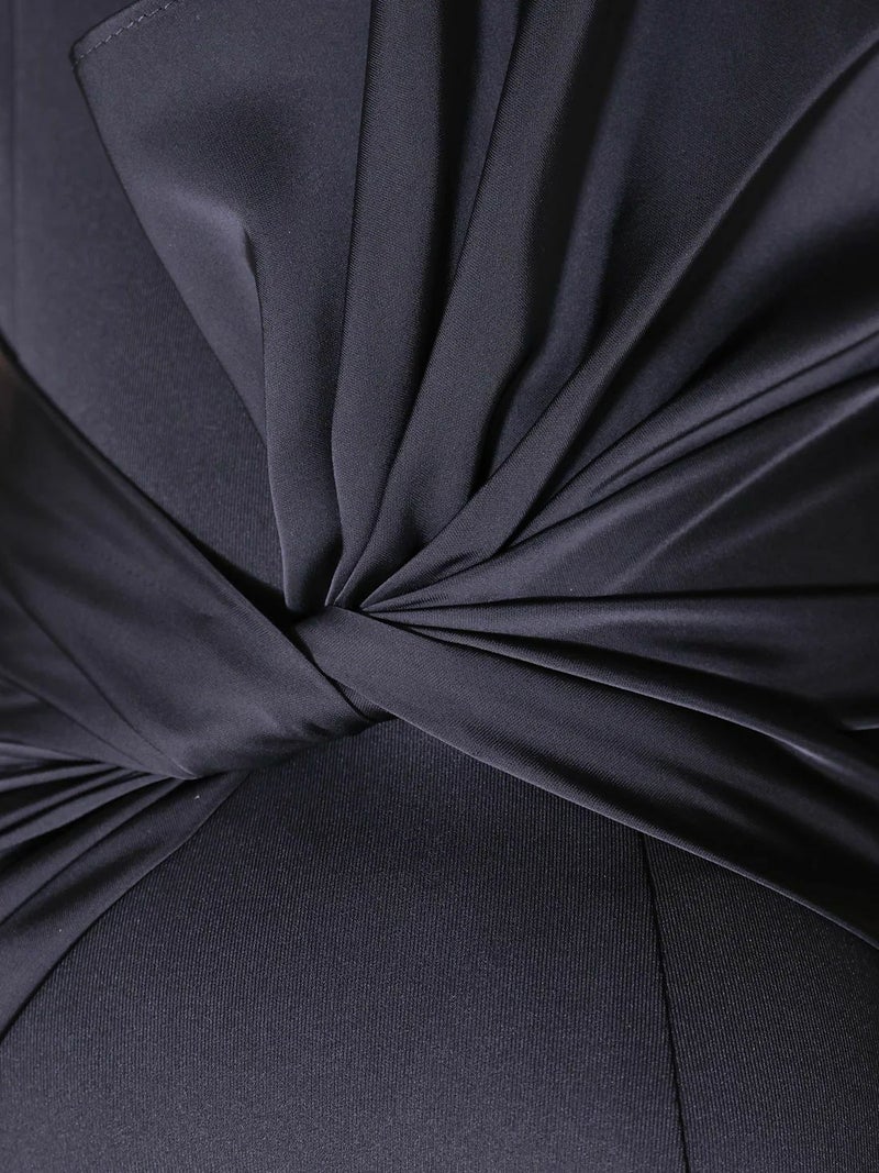 5. [Veautt/ヴュート] 高級 ノースリーブ サイドジップ ウエストタック ドレープ サテン シンプル タイト 膝丈ドレス