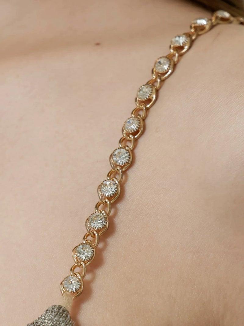 3. [Veautt/ヴュート] 高級 ブランド タイト膝丈ドレス 谷間 ノースリーブ アシンメトリー ビジューチェーン スタッズ
