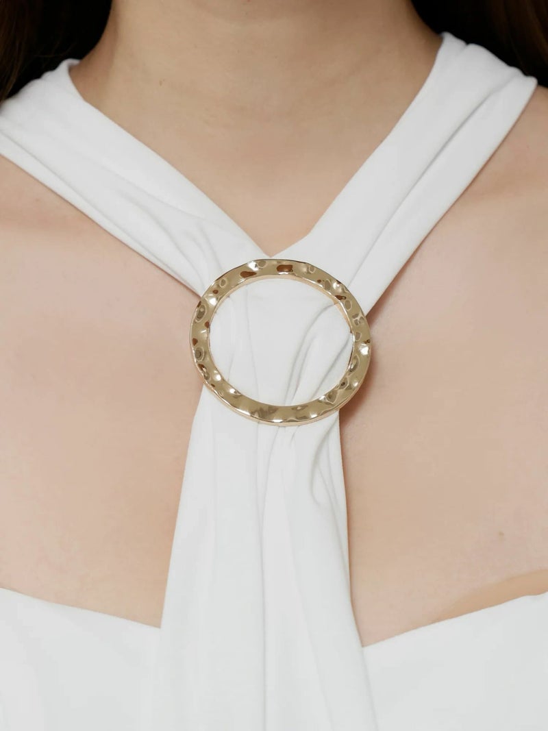 4. [Veautt/ヴュート] 高級 ブランド タイト膝丈ドレス ホルターネック ジップスリット リング 大人 ワンカラー
