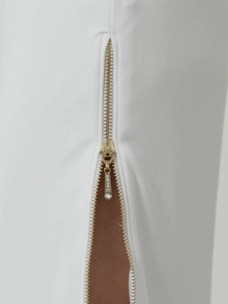 ジップスリットで美脚アピール♡ [Veautt/ヴュート] 高級 ブランド タイト膝丈ドレス ホルターネック ジップスリット リング 大人 ワンカラー