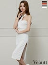 煌めくリングが目を惹く♡ [Veautt/ヴュート] 高級 ブランド タイト膝丈ドレス ホルターネック ジップスリット リング 大人 ワンカラー