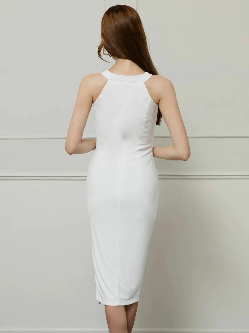 3. [Veautt/ヴュート] 高級 ブランド タイト膝丈ドレス ホルターネック ジップスリット リング 大人 ワンカラー