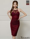 大人のエレガンスを纏う1着♡ [Veautt/ヴュート] 高級 ブランド タイト膝丈ドレス ホルターネック スリット デコルテシアー ビジューチェーン