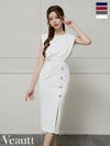 4. [Veautt/ヴュート] 高級 ブランド タイト膝丈ドレス ノースリーブ パールボタン 胸元カバー スリット 大人 シンプル ワンカラー (伊藤舞雪着用)