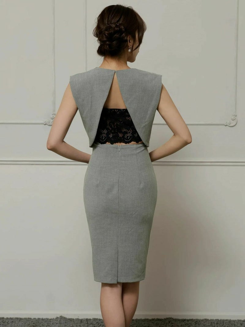 大人の美しさを引き立てる♡ [Veautt/ヴュート] 高級 ブランド タイト膝丈ドレス ノースリーブ 背中魅せ ウエストカット レースインナー付き (ゆんころ着用)