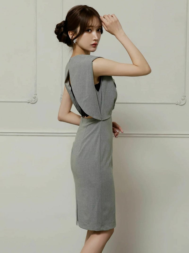 気品のある大人女性に♡ [Veautt/ヴュート] 高級 ブランド タイト膝丈ドレス ノースリーブ 背中魅せ ウエストカット レースインナー付き (ゆんころ着用)