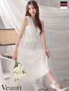 5. [Veautt/ヴュート] 高級 ブランド Aラインロングドレス 背中魅せ シンプル 大人 ノースリーブ 上品 ペプラム チュール