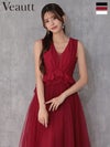 チュールが優雅な印象に♡ [Veautt/ヴュート] 高級 ブランド Aラインロングドレス 背中魅せ シンプル 大人 ノースリーブ 上品 ペプラム チュール