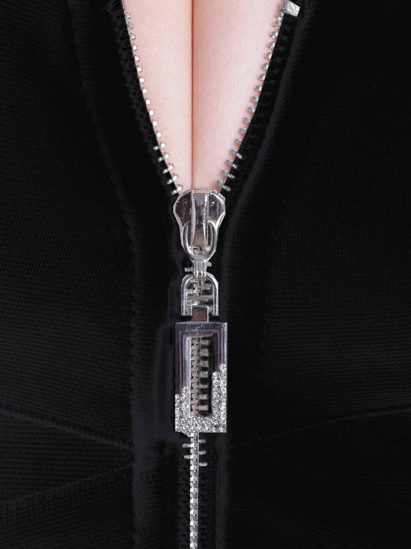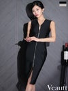 3. [Veautt/ヴュート] 高級 ワンカラー ノースリーブ ジップ ファスナースリット シンプル タイト 膝丈ドレス