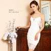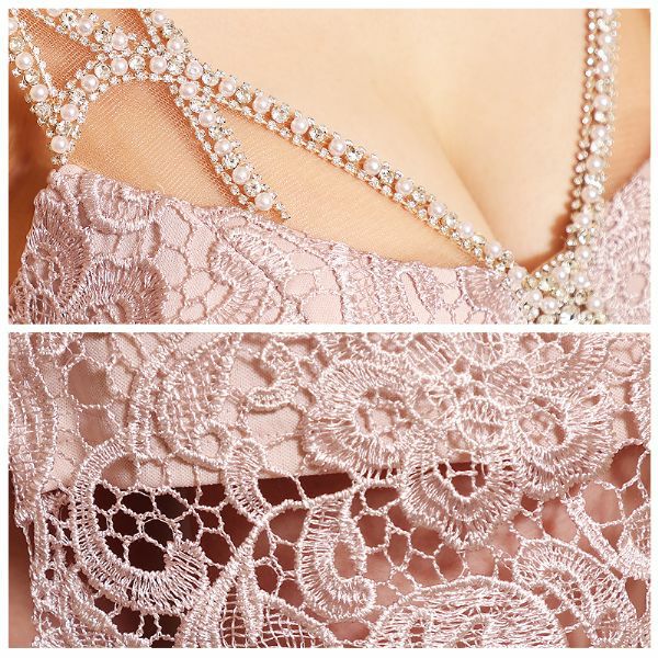 5. [Veautt/ヴュート] 高級パールショルダーバストビジュー付レースデザインタイト膝丈ドレス