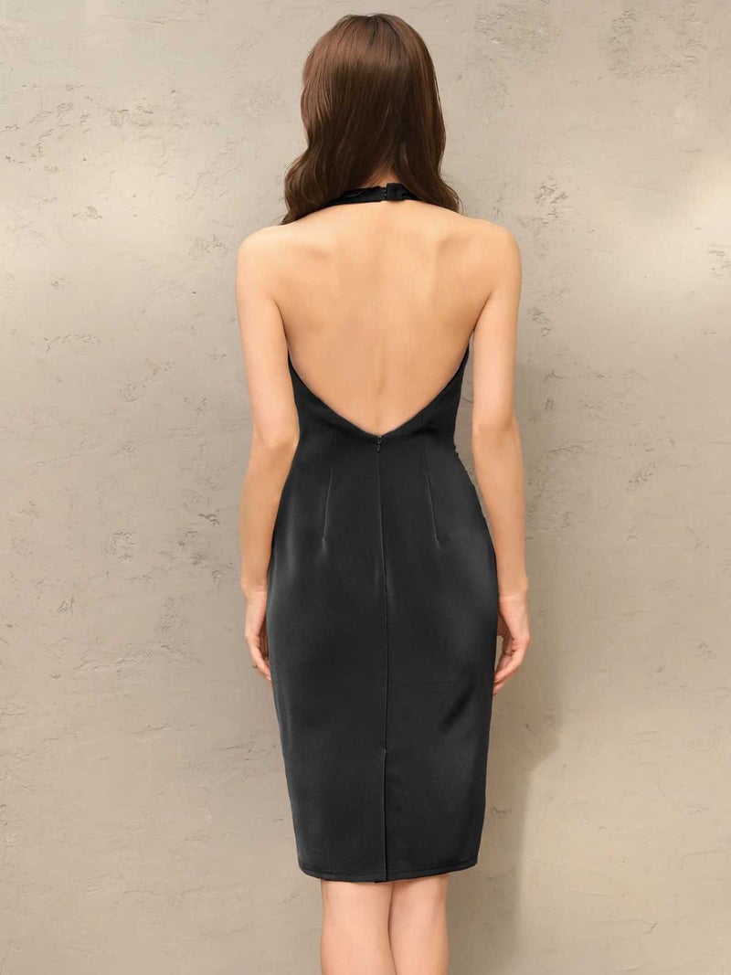 4. 予約商品【3月下旬入荷予定】[Veautt/ヴュート] 高級 ブランド タイト膝丈ドレス ホルターネック ドレープ 背中魅せ ワンカラー 大人