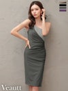5. 予約商品【3月下旬入荷予定】[Veautt/ヴュート] 高級 ブランド タイト膝丈ドレス ワンショルダー ウエストタック ファスナースリット