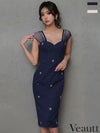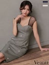 美しいデコルテラインをメイク♡ [Veautt/ヴュート] 高級 ブランド タイト膝丈ドレス 谷間 ノースリーブ シアー ハートカット ビジュー