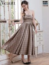 エレガントな美しさを演出♡ [Veautt/ヴュート] 高級 ブランド Aライン 膝丈ドレス ベア キャミソール 2way チェック柄 胸元カバー ギャザー