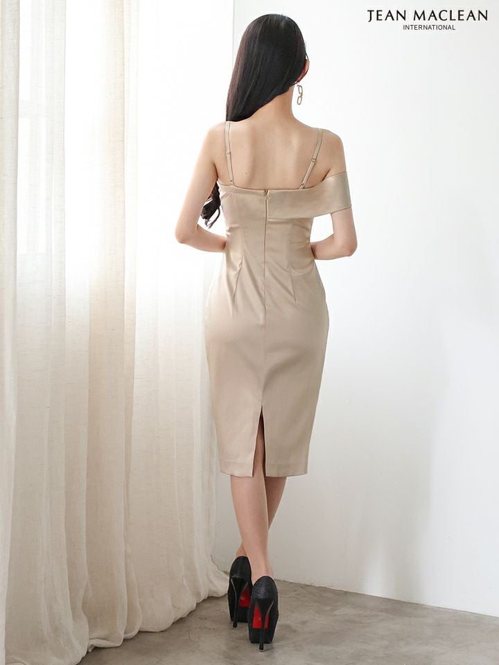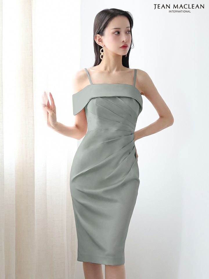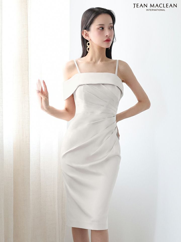 他の画像を見る 大人の魅力を引き立てる♡ [JEANMACLEAN/ジャンマクレーン] 高級 ブランド タイト膝丈ドレス キャミソール バックスリット タックデザイン ワンカラー ¥ 28,380 税込 お気に入りに追加