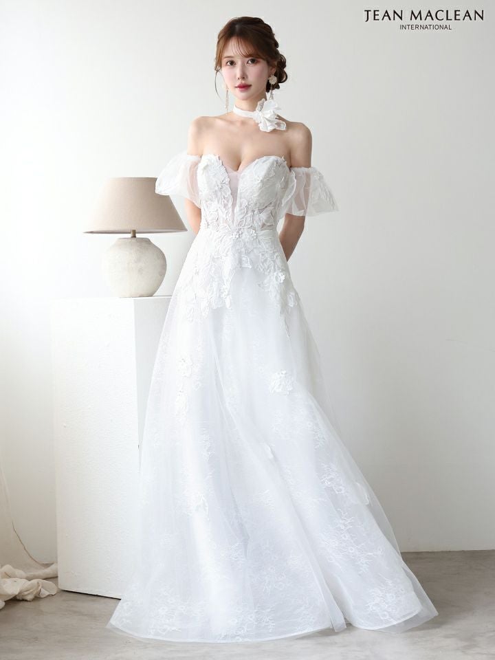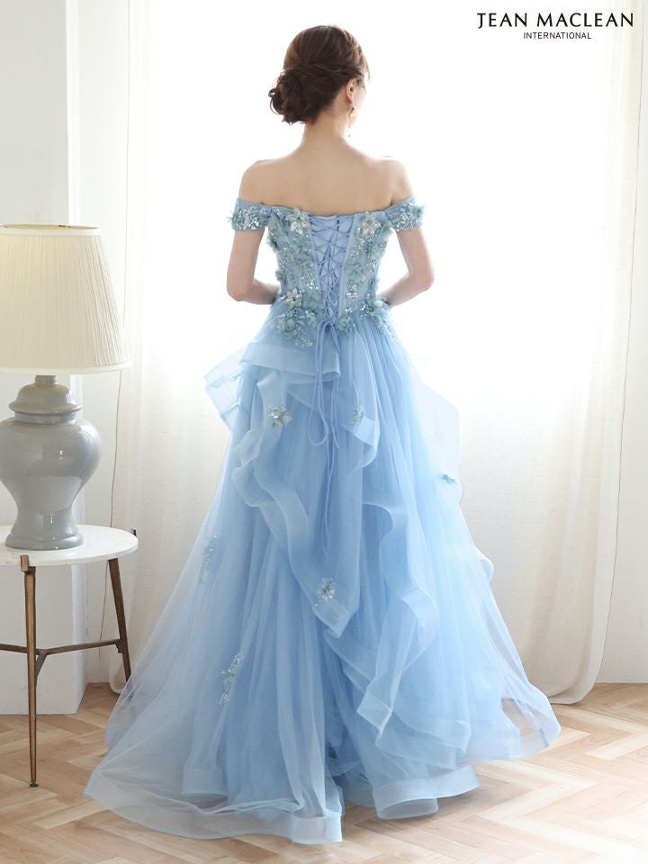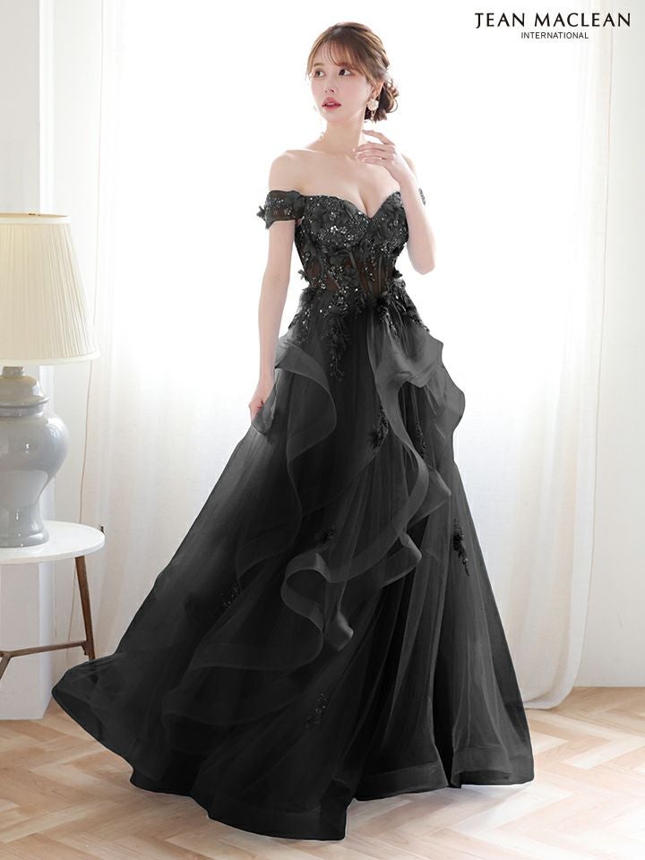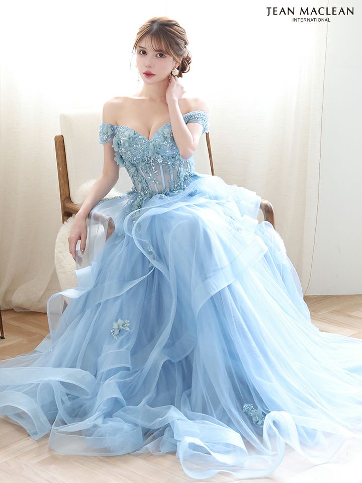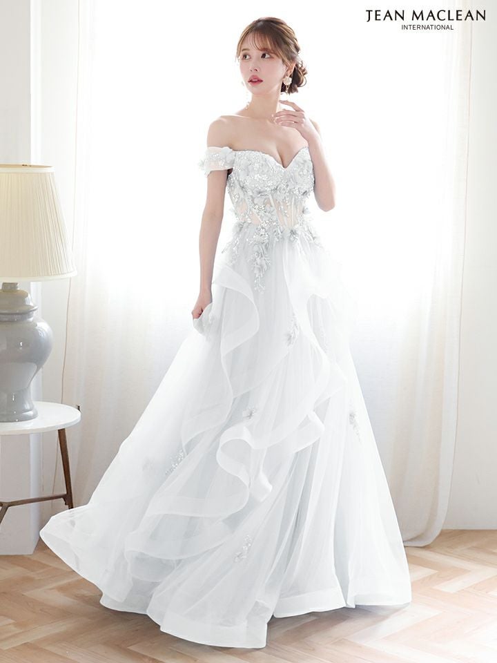他の画像を見る 美しさをたっぷり引き出す♡ [JEANMACLEAN/ジャンマクレーン] 高級 バースデー オフショルダー 立体フラワー シアー コルセット風デザイン チュール Aラインロングドレス ¥ 59,400 税込 お気に入りに追加