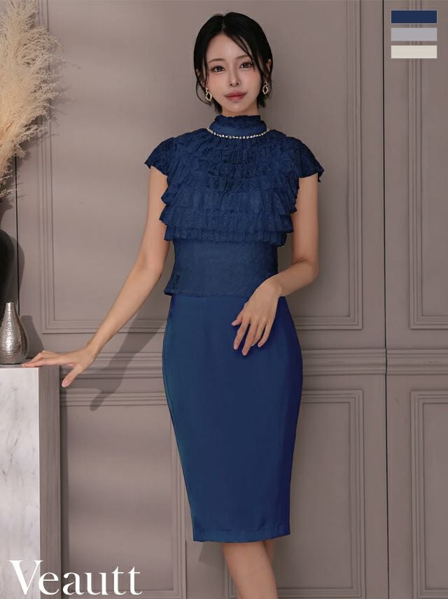 他の画像を見る シンプルなワンカラーで魅力を引き出す♡ [Veautt/ヴュート] 高級 ノースリーブ レース フリル ハイネック ビジュー 胸元カバー タイト膝丈ドレス ¥ 30,580 税込 お気に入りに追加