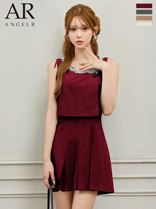 他の画像を見る トップスは着脱可能の2wayデザイン♡ [Angel-R/エンジェルアール] 高級 2way ビジューノースリーブ キャミソール リボン プリーツ フレアミニドレス ¥ 30,580 税込 お気に入りに追加