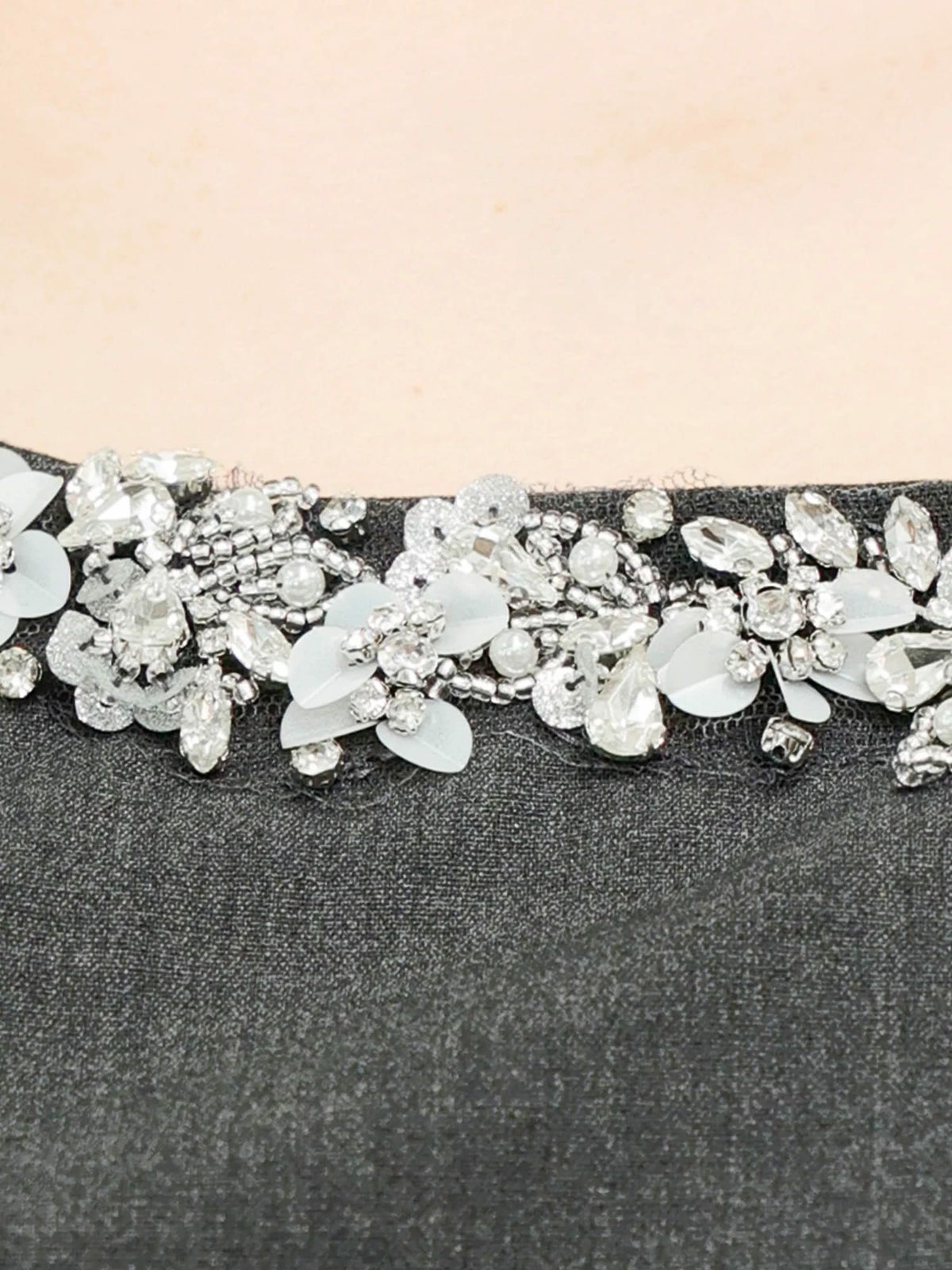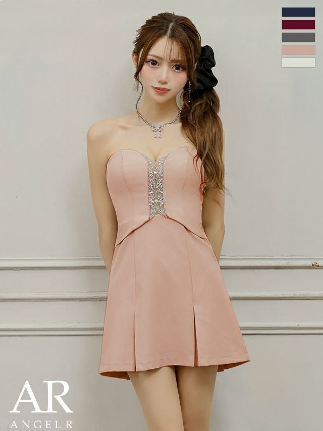 他の画像を見る ビジューが上品に煌めく☆ [Angel-R/エンジェルアール] 高級 2way ベアトップ ビジューキャミソール バストフリル Vカット ワンカラー タイトミニドレス ¥ 29,480 税込 お気に入りに追加