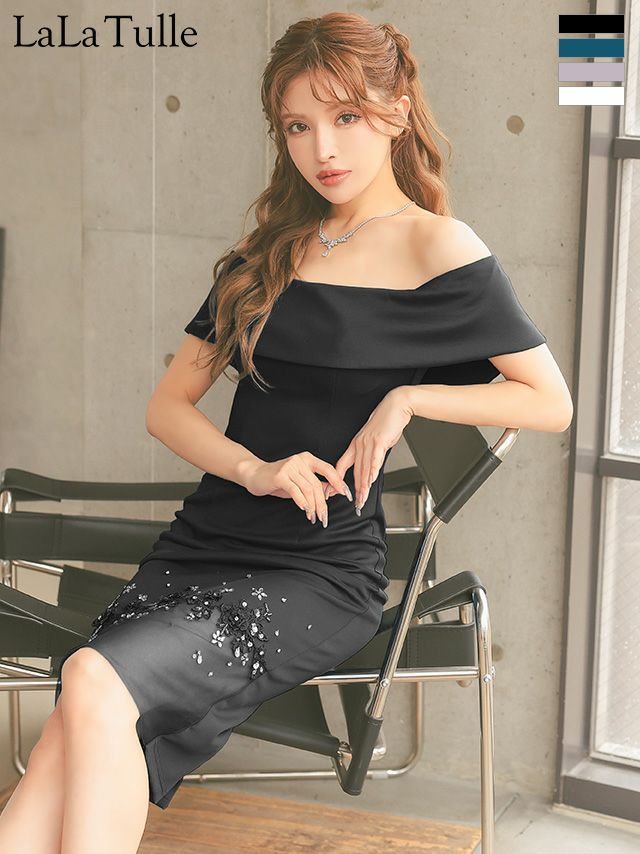 他の画像を見る 程よい肌見せで魅了する♡ [Veautt/ヴュート] 高級 ブランド タイト膝丈ドレス オフショルダー フラワー刺繍 シアー切替 (ゆんころ着用) ¥ 31,680 税込 お気に入りに追加