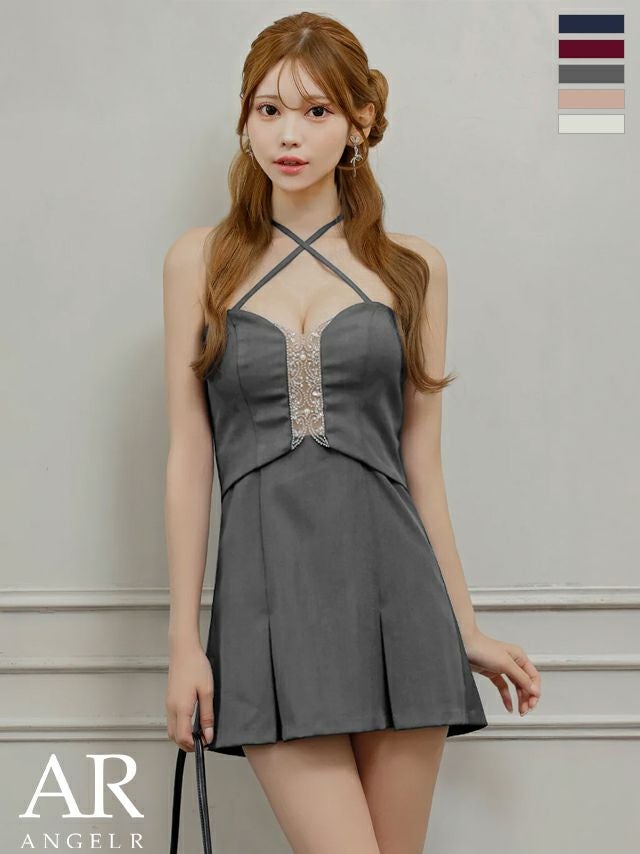 他の画像を見る ビジューが煌めき高級感UP☆ [Angel-R/エンジェルアール] 高級 ブランド フレアミニドレス 谷間 ホルターネック ネックリボン ベアトップ 2way プリーツスカート ビジュー ¥ 29,480 税込 お気に入りに追加