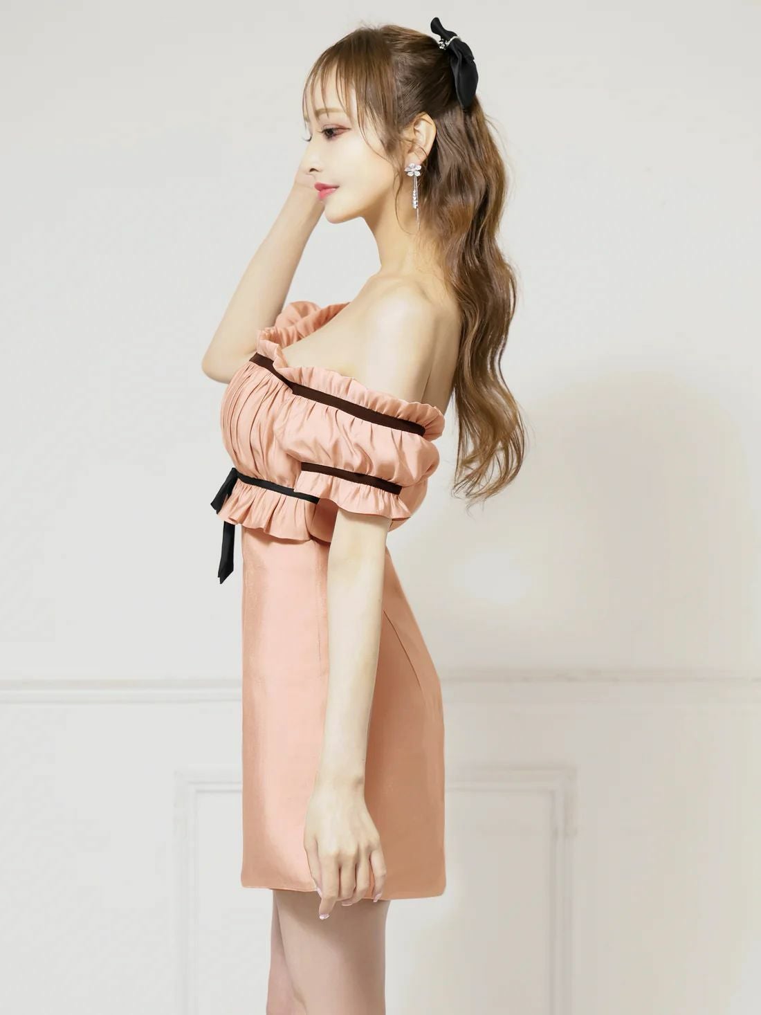 他の画像を見る ボリュームのある袖が可愛すぎる♡ [Angel-R/エンジェルアール] 高級 ブランド タイトミニドレス 肩出し 二の腕カバー 長袖 リボン ショルダーチェーン バストドレープデザイン ¥ 29,480 税込 お気に入りに追加