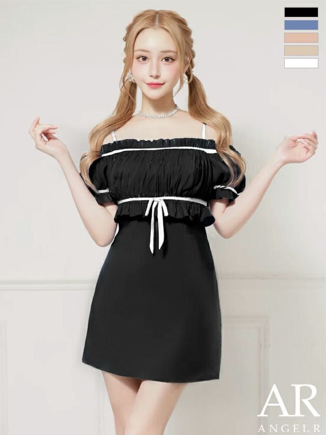 他の画像を見る お顔周りをスッキリ魅せるデザイン☆ [Angel-R/エンジェルアール] 高級 ブランド Aラインミニドレス キャミソール フリルリボン パールショルダー ワンカラー ¥ 28,380 税込 お気に入りに追加