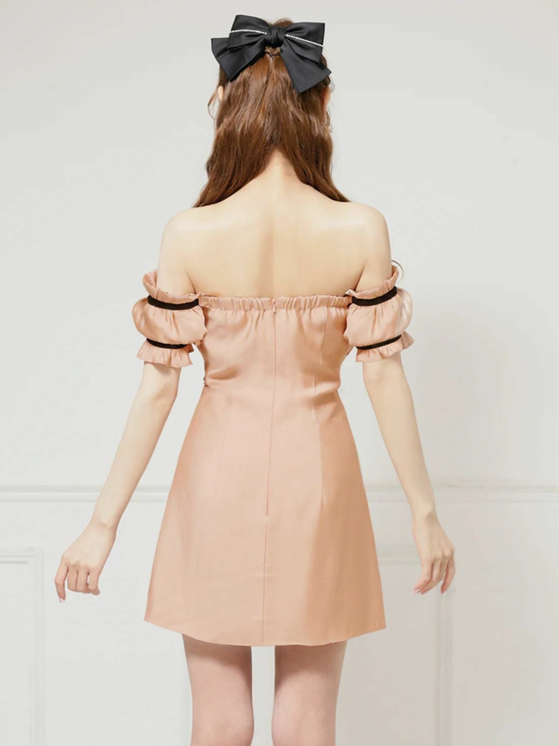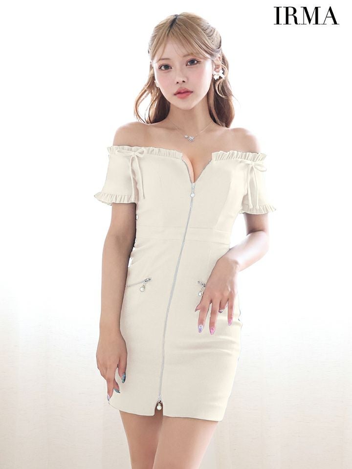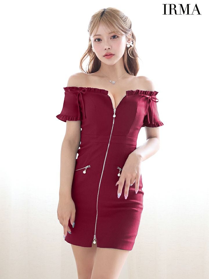 他の画像を見る ジップ調節で谷間をセクシーに魅せる♡ [IRMA/イルマ] 高級 オフショルダー ジップ パール リボン ギャザー ラメ糸混ニット 谷間魅せ タイトミニドレス ¥ 30,580 税込 お気に入りに追加