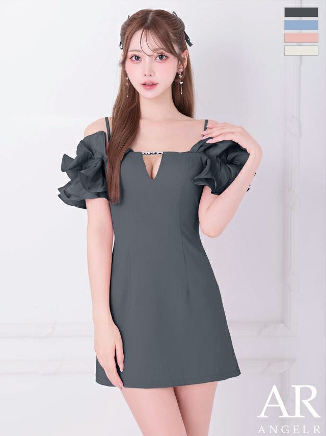 他の画像を見る ボリュームのある袖が可愛すぎる♡ [Angel-R/エンジェルアール] 高級 ブランド Aラインミニドレス 谷間 オフショルダー 2way フリルスリーブ チャーム ワンカラー ¥ 27,280 税込 お気に入りに追加