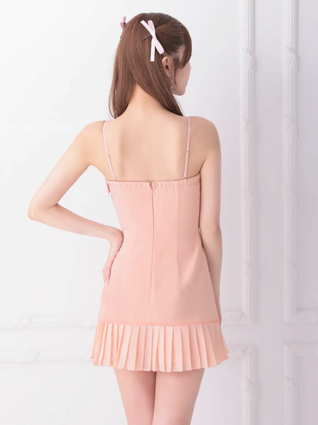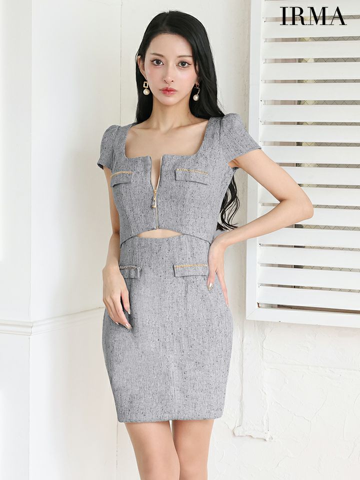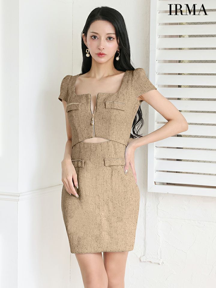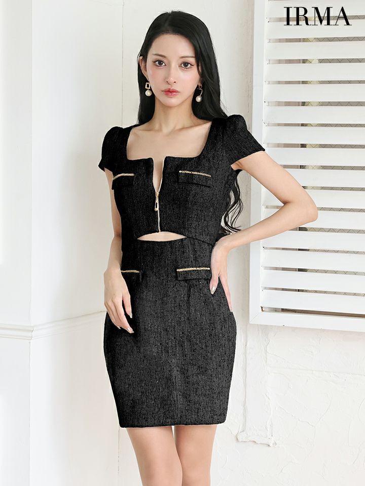 他の画像を見る 可愛く色気をアピールできる♡ [IRMA/イルマ] 高級 キャミソール ビジューリボン ラメツイード ジップ セットアップ プリーツ フレアミニドレス ¥ 29,480 税込 お気に入りに追加