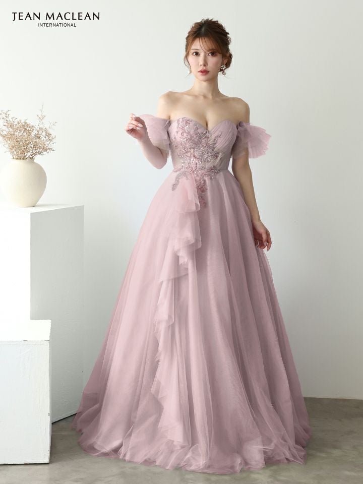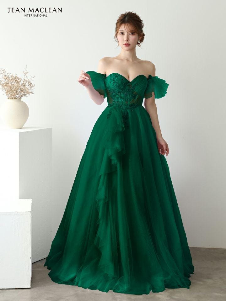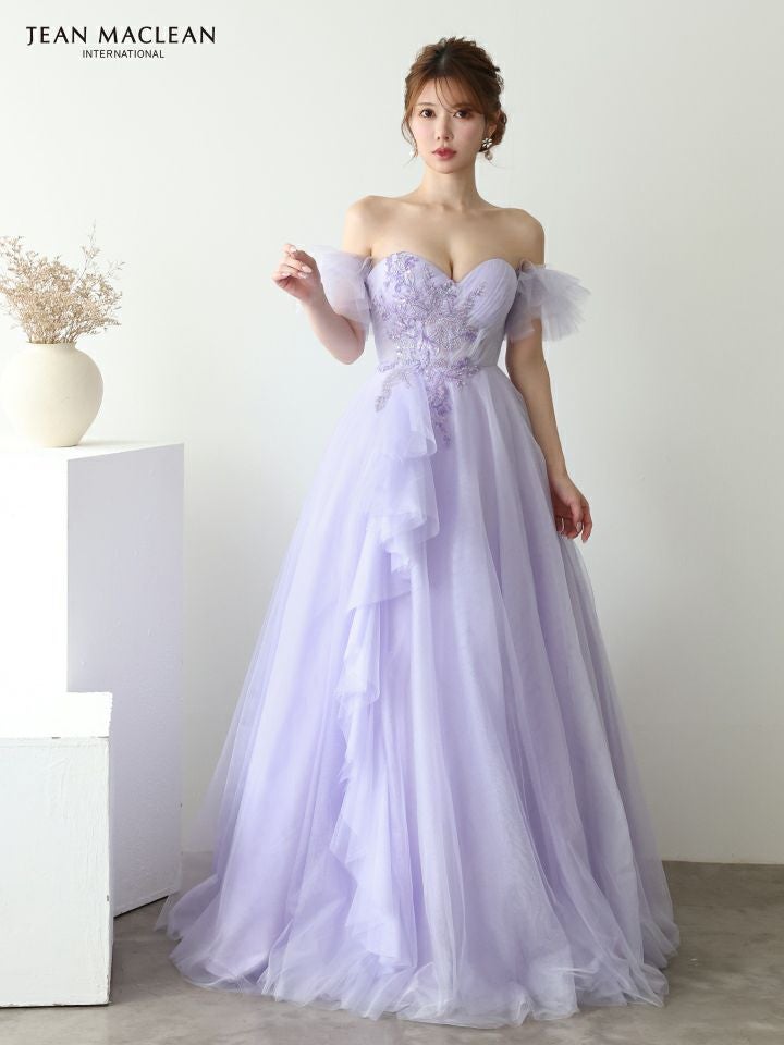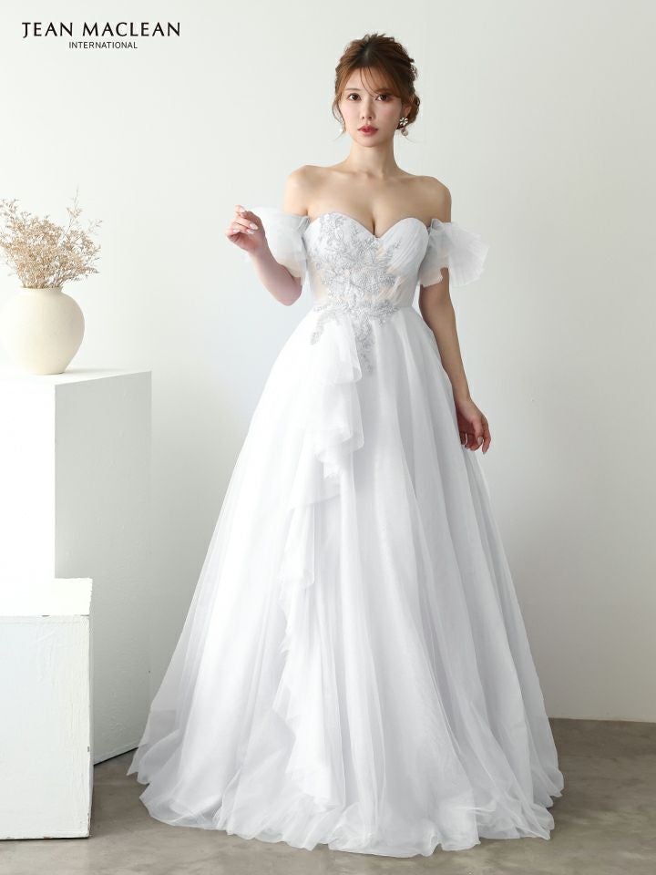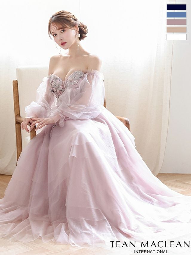 他の画像を見る 優雅な女性らしさを引き出す♡ [JEANMACLEAN/ジャンマクレーン] 高級 バースデー パフスリーブ付き ハートカット ベアデザイン スパンコール刺繍 フリル チュール Aラインロングドレス ¥ 51,700 税込 お気に入りに追加