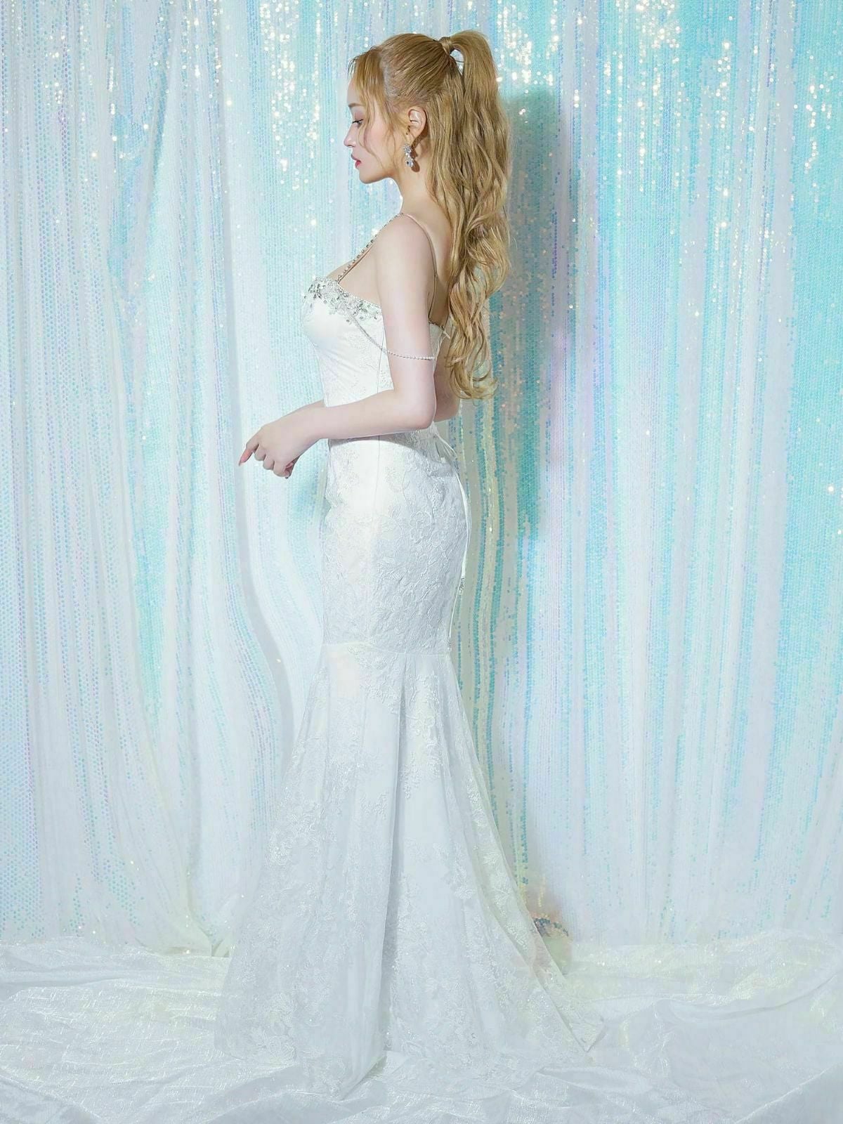 他の画像を見る 煌めくパールチェーンが目を惹く♡ [Angel-R/エンジェルアール] 高級 バースデー ブランド マーメイドロングドレス 2way ベア キャミソール バストコード パール 総レース (ゆいぴす着用) ¥ 54,780 税込 お気に入りに追加