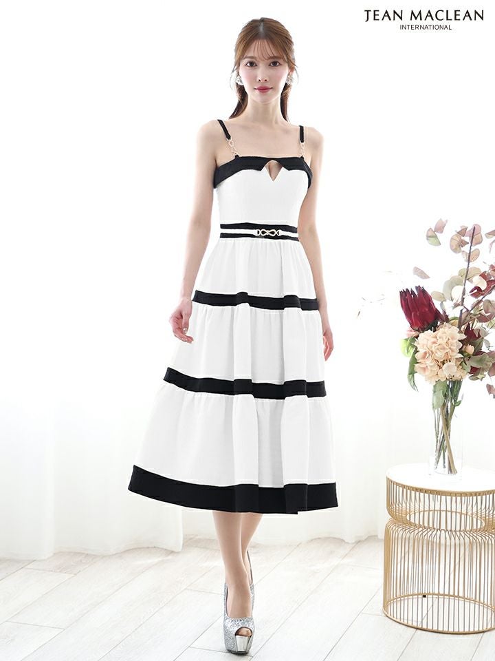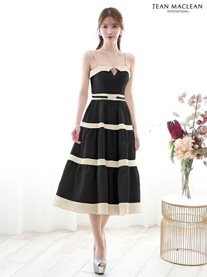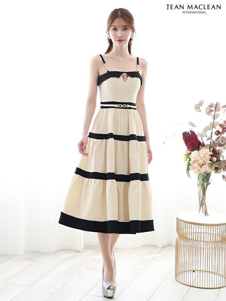 他の画像を見る 着心地抜群でキュートな一着☆ [JEANMACLEAN/ジャンマクレーン] 高級 キャミソール ウエストベルト バストカット 柄織りニット バイカラー Aラインロングドレス ¥ 36,300 税込 お気に入りに追加