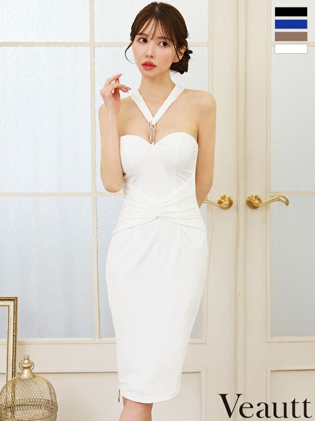 他の画像を見る 気品溢れる女性に格上げ♡ [Veautt/ヴュート] 高級 バストチャーム ホルターネック ウエストギャザー ファスナースリット タイト 膝丈ドレス ¥ 29,480 税込 お気に入りに追加