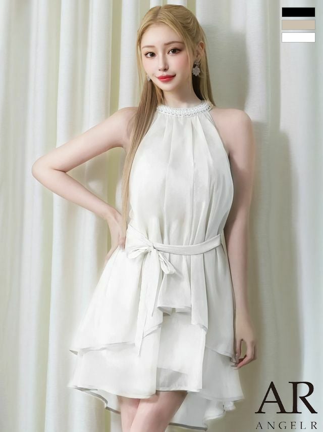他の画像を見る セクシーさと可愛さを兼ね備えた1着♡ [Angel-R/エンジェルアール] 高級 ホルターネック リボン 胸元フリル パール ビジュー サテンタイトミニドレス ¥ 32,780 税込 お気に入りに追加