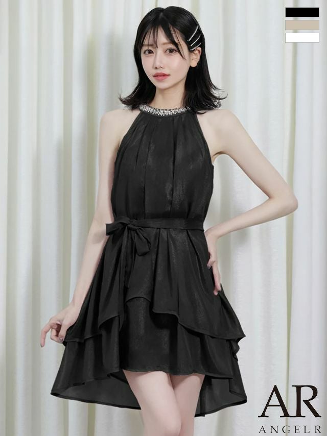 他の画像を見る ラグジュアリーな雰囲気を纏う♡ [Angel-R/エンジェルアール] 高級 ホルターネック リボン 胸元フリル パール ビジュー サテンタイトミニドレス ¥ 32,780 税込 お気に入りに追加