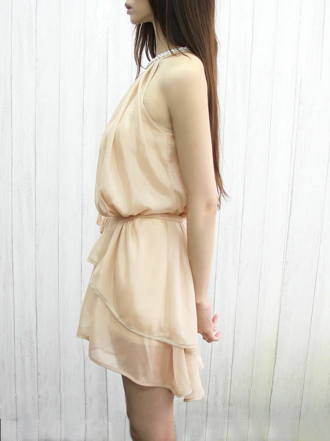 他の画像を見る ふんわりシフォンがCUTE♡ [Angel-R/エンジェルアール] 高級 ホルターネック シフォン ウエストベルト パールチェーン フレアミニドレス ¥ 29,480 税込 お気に入りに追加