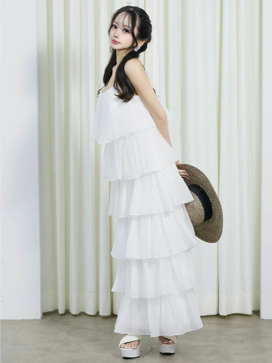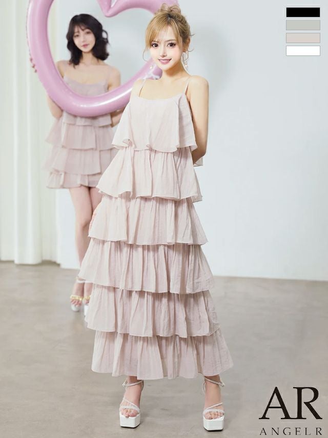 他の画像を見る 大人フェミニンなコーデにメイク♡ [Angel-R/エンジェルアール] 高級 キャミソール ワンカラー ティアード フリル Aラインロングドレス ¥ 32,780 税込 お気に入りに追加
