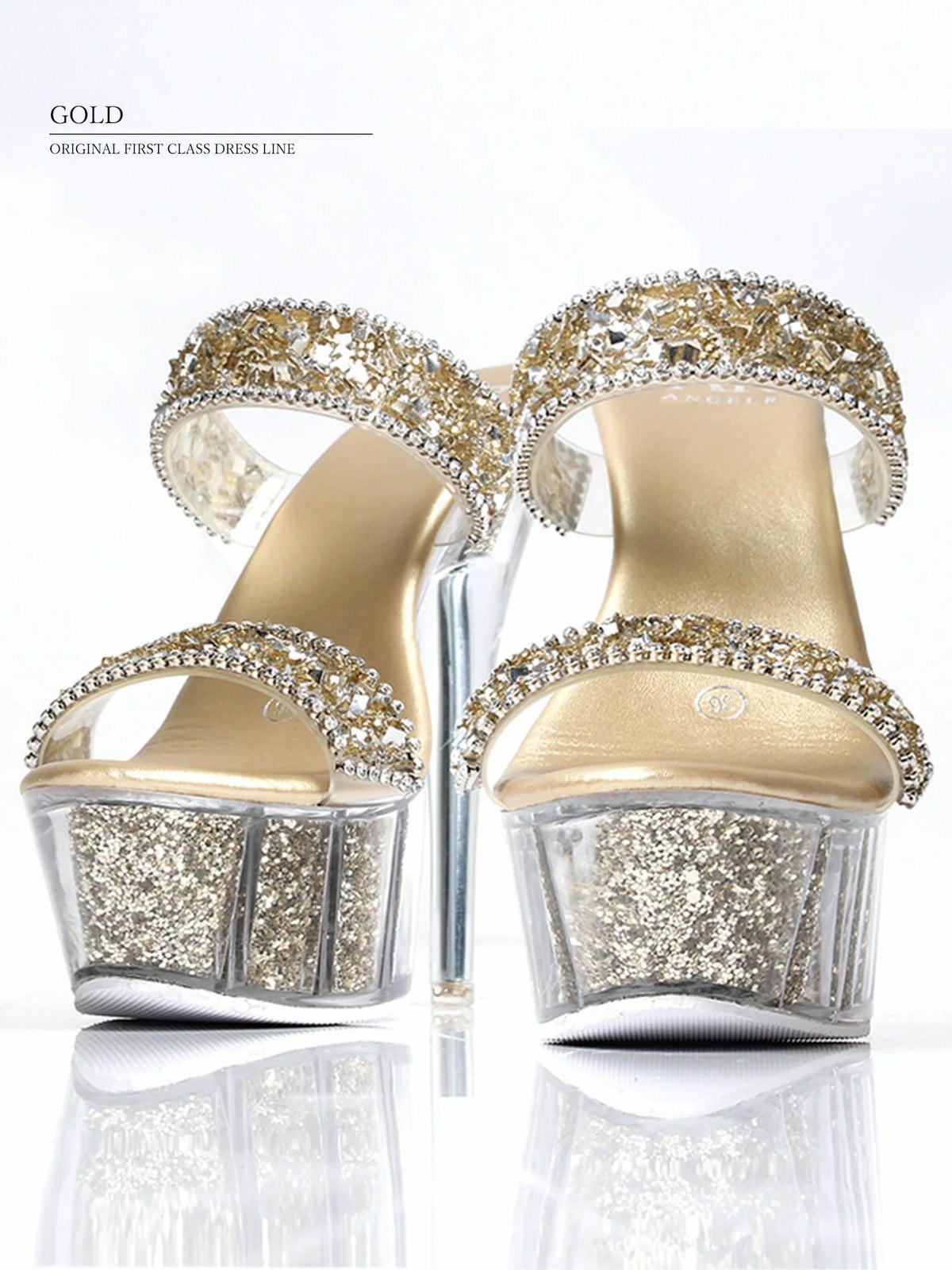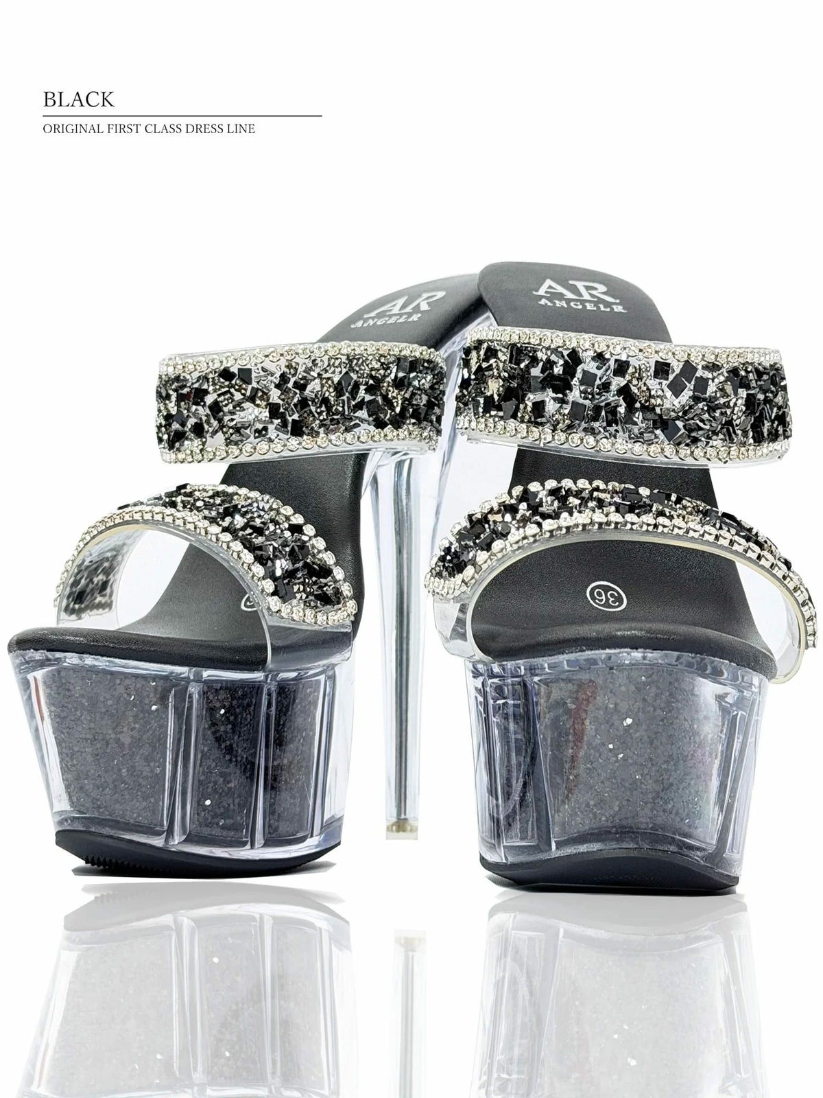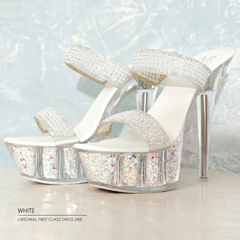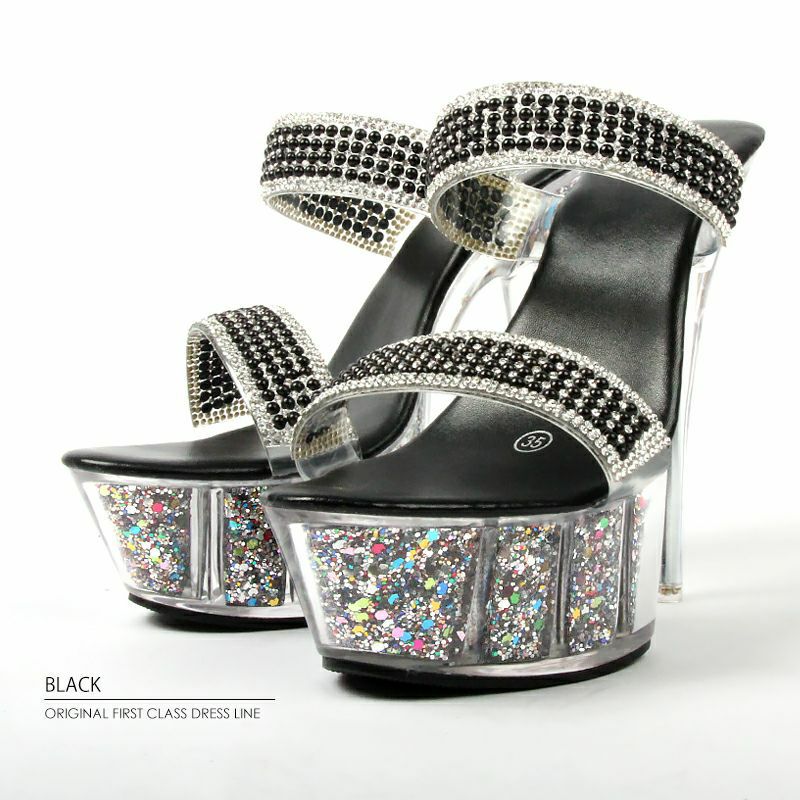 他の画像を見る 17cmヒール☆クリア感あり!足元が輝く☆ 予約商品【2月下旬入荷予定】[Angel-R/エンジェルアール] 高級シングルビジューラメクリア厚底サンダルオープントゥハイヒール ¥ 13,200 税込 お気に入りに追加
