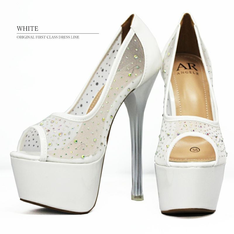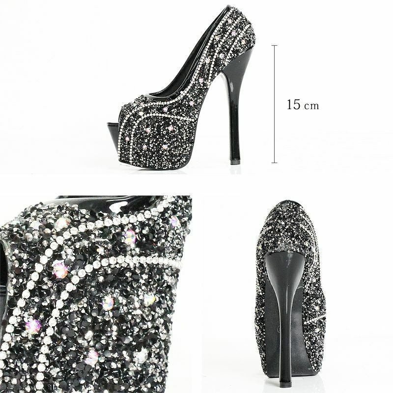 他の画像を見る 15cmヒール☆足元をゴージャスに魅せる☆ 予約商品【3月中旬入荷予定】[Angel-R/エンジェルアール] 高級ゴージャスラインストーンラメオープントゥ厚底ハイヒール ¥ 13,200 税込 お気に入りに追加