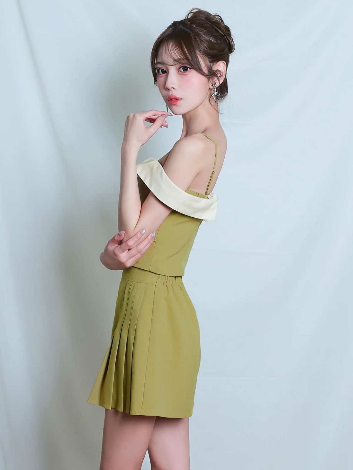 他の画像を見る トレンドを詰め込んだ1着♡ [Angel-R/エンジェルアール] 高級 ブランド フレアミニドレス セットアップ 谷間 オフショルダー ウエストベルト バイカラー プリーツ ¥ 28,380 税込 お気に入りに追加