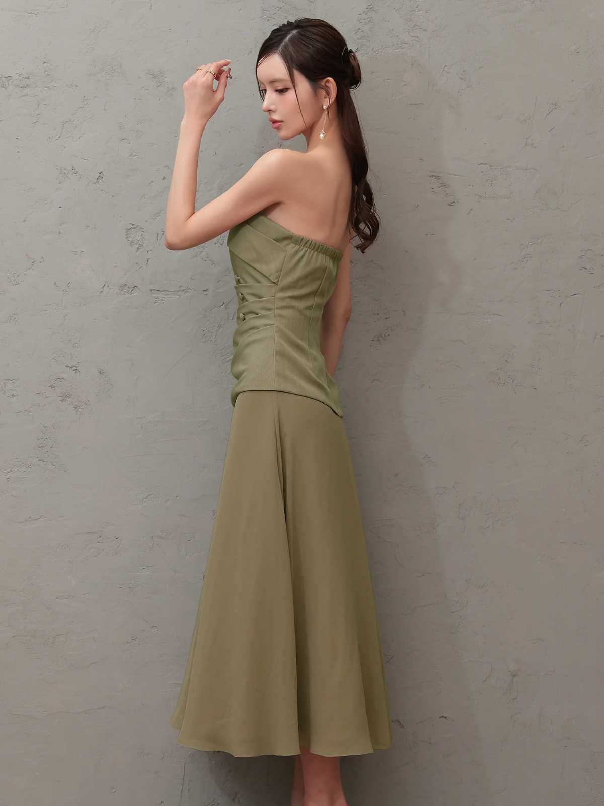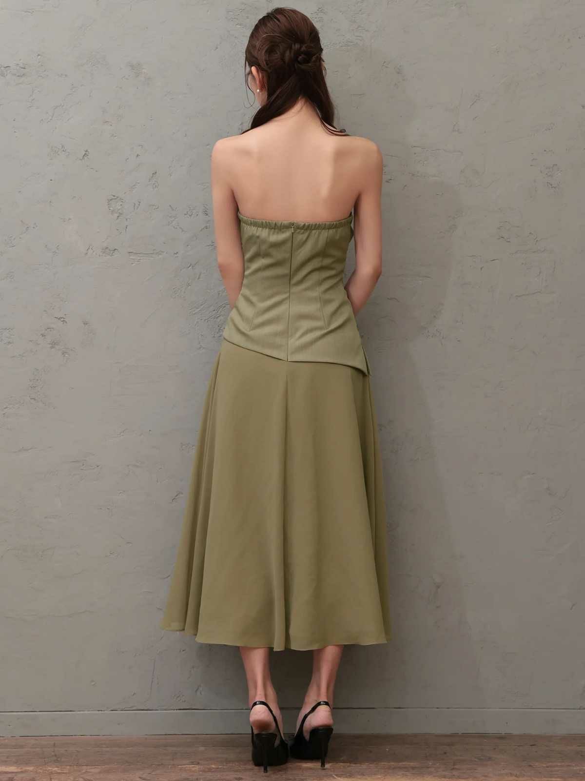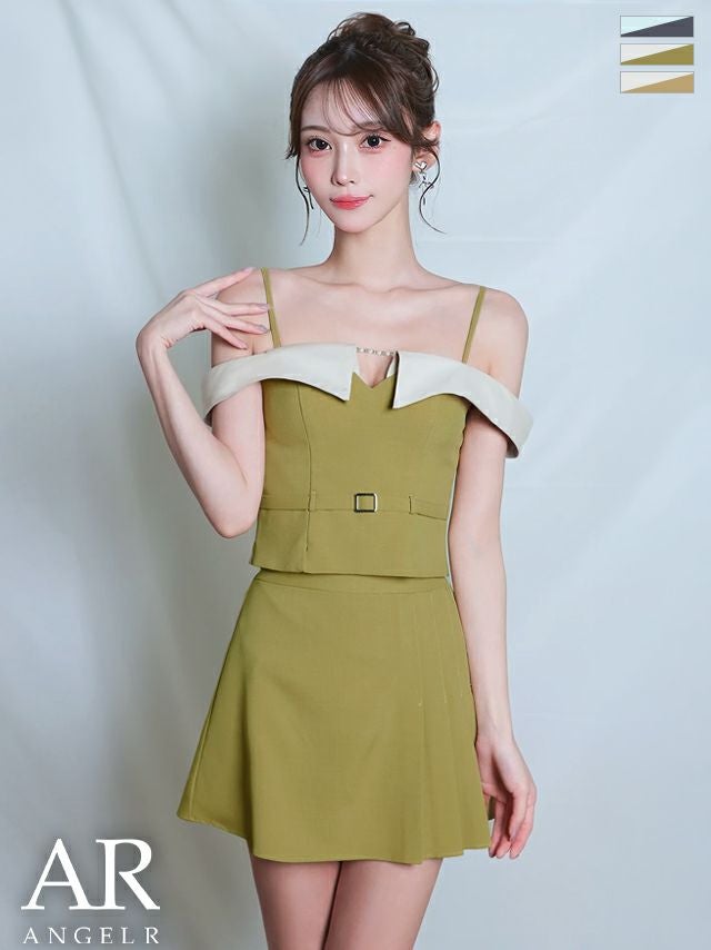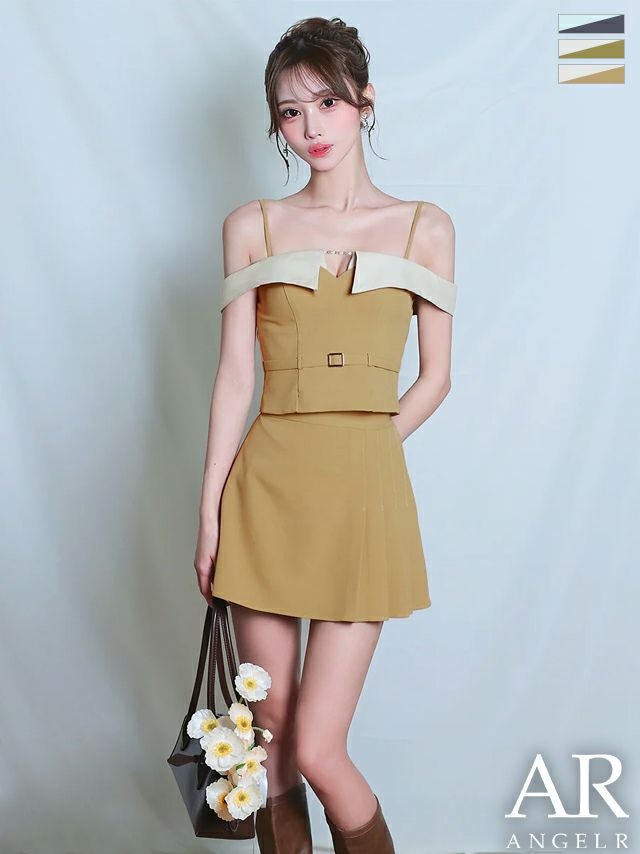 他の画像を見る ベルトで脚長効果抜群♡ [Angel-R/エンジェルアール] 高級 ブランド フレアミニドレス セットアップ 谷間 オフショルダー ウエストベルト バイカラー プリーツ ¥ 28,380 税込 お気に入りに追加