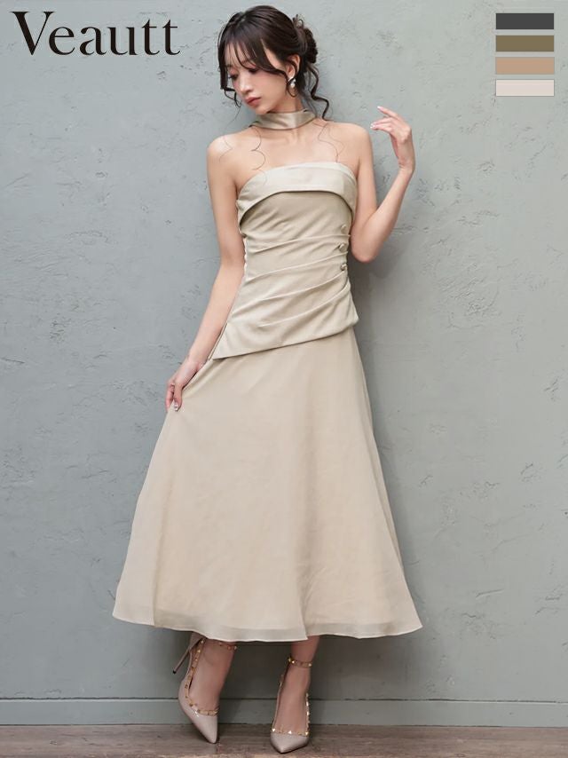 他の画像を見る 洗練されたシルエットを演出♡ [Veautt/ヴュート] 高級 ブランド Aラインロングドレス ベア ウエストタック シフォン 大人 ワンカラー スカーフ付き ¥ 31,680 税込 お気に入りに追加