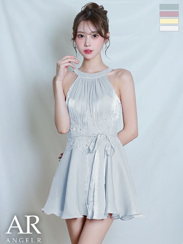 他の画像を見る リボンで可愛くメリハリをつける♡ [Angel-R/エンジェルアール] 高級 ブランド フレアミニドレス ホルターネック 胸元カバー ウエストリボン フラワー刺繍 ギャザー ¥ 28,380 税込 お気に入りに追加