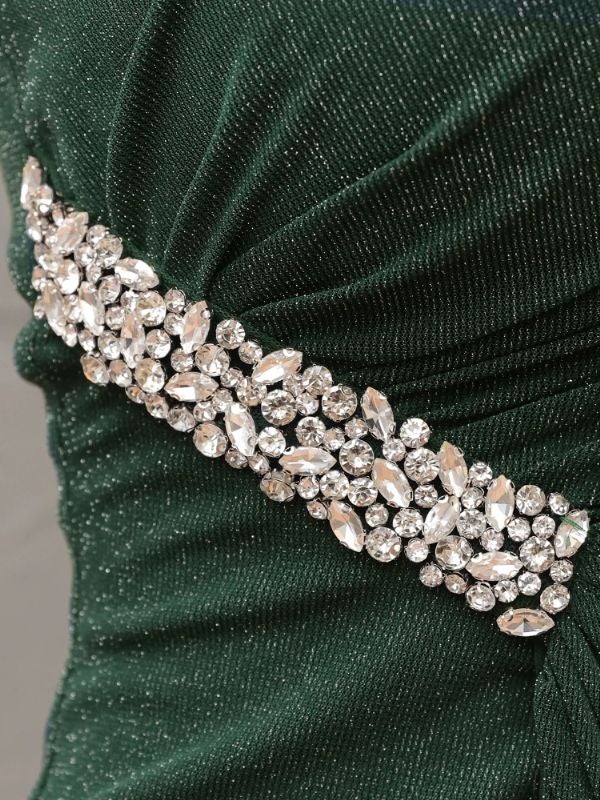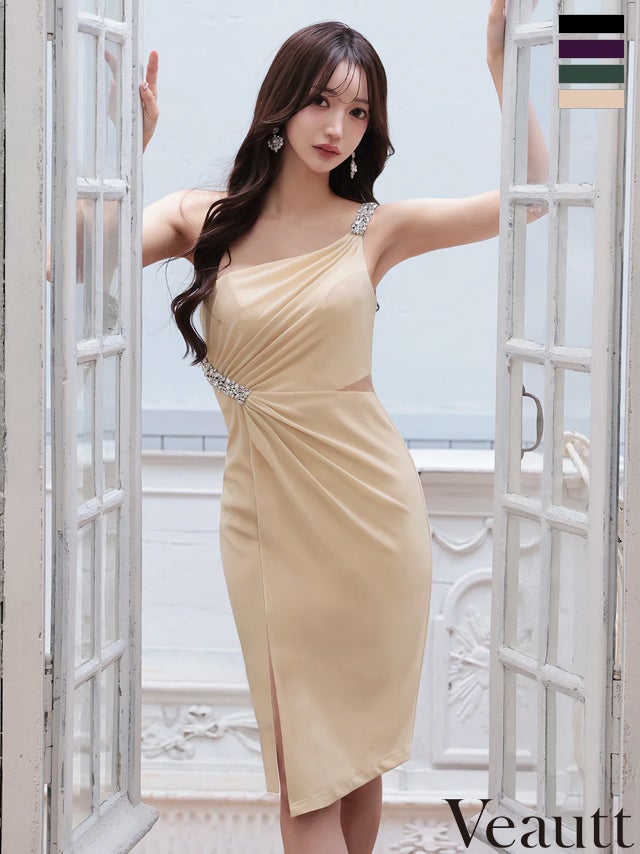 他の画像を見る ラグジュアリーな雰囲気漂う♡ 予約商品【3月下旬入荷予定】[Veautt/ヴュート] 高級 ブランド タイト膝丈ドレス ワンショルダー ラメ ビジュー ウエストカット ドレープ スリット ¥ 31,680 税込 お気に入りに追加